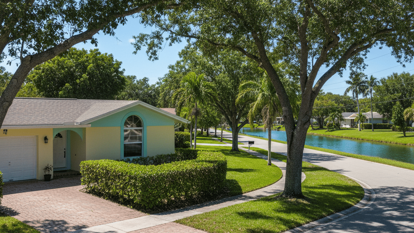 Welleby and the Hills of Welleby include several sub-neighborhoods that deliver a mix of larger single-family houses and townhome clusters. Where Mainlands tend to skew more compact, Welleby offers combinations of larger lots and houses with long driveways and mature oak canopy in places.